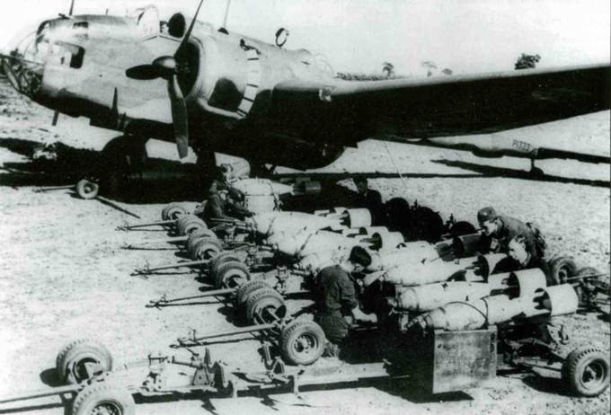 «Хэмпден» P1333 EA-F 49-й эскадрильи в начале войны. Самолет снаряжают 113-кг и 226-кг бомбами. Эта машина была сбита во время ночного рейда 16-17 августа 1940 года.