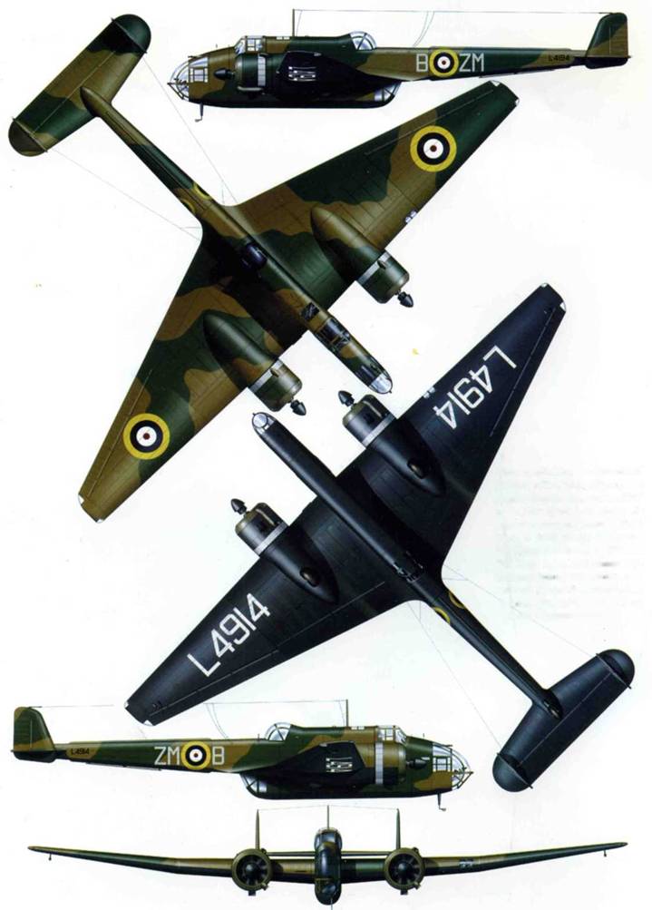 Хэндли-Пейдж «Хэмпдэм» B.Mk.l L4194ZM-B, 185-я эскадрилья, Коут смур, июнь 1939 года. Камуфляж по схеме А: верхние поверхности – Dark Earth и Dark Green, нижние – Night, бортовые коды – Medium Sea Grey, серийный номер черный (продублирован белым цветом ни нижней поверхности крыла). Кокарды типа А1 на верхних поверхностях.