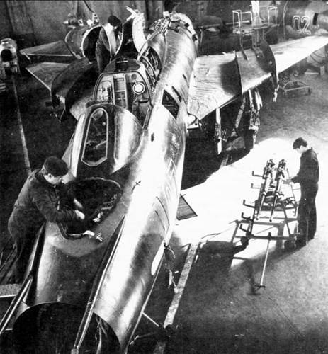 Как видно, тяга выросла значительно. Небольшое увеличение расхода топлива удалось с лихвой компенсировать большим его запасом. Меньшие габариты АЛ-21Ф позволили увеличить 2-й, 3-й и 4-й топливные баки, для чего конструкторы изменили конструкцию фюзеляжа в районе шпангоутов №N9 18-28. В результате емкость топливных баков возросла на 1340 л и составила 4740 л. Благодаря этому практическая дальность полета серьезно увеличилась (см. таблицу на стр. 28).