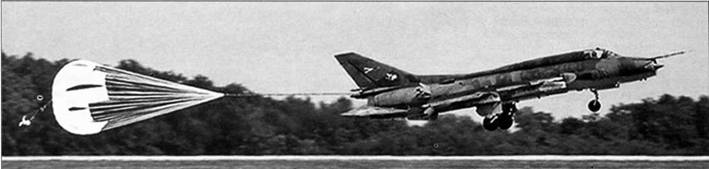 Испытания С-22И показали, что длина его разбега без боевой нагрузки по сравнению с Су-7БМ уменьшилась на 450- 470 м, а пробега (с тормозным парашютом) – на 550-600 м. Посадочная скорость снизилась на 50 км/ч и составила 250-260 км/ч. Для сравнения будет уместно привести ВПХ истребителя МиГ-21 ПФ. Посадочная скорость – 270- 290 км/ч, длина пробега с парашютом – 950 м. Заметно явное превосходство С-22И, хотя он был на две тонны тяжелее «МиГа».