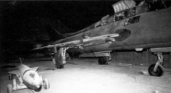 Обновили оборудование. Вместо АРК-10 установили АРК-15. В системе кондиционирования увеличили запас спирто-водной смеси (на сленге техперсонала – «Массандра») с 6 до 20 л, что со стороны личного состава ИАС было встречено весьма положительно. Служить стало веселее. Однако во время заливания смеси в горловину бачка из большой канистры стали часто происходить проливы – страшное безобразие. «Массандра» проливалась прямо на балочный держатель, и, если на нем висел блок с НАР УБ-32 или Б-8, спирт с водой попадал аккурат в электроразъем блока. Ножки разъема начинали корродировать, и со временем на них появлялось паразитное напряжение от 10 до 27 В, что могло привести к непроизвольным пускам ракет на земле.
