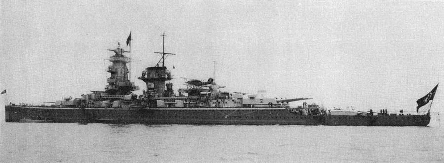 Тем не менее Франция заявила протест по этому поводу и на Лондонской конференции 1930 г. добилась разрешения на строительство линкоров типа “Дюнкерк”. Таким образом, 5 февраля 1929 г. в Киле заложили “броненосный корабль А”, впоследствии названный “Дойчланд” (“Германия”) [* В серии было 2 единицы: “Дюнкерк" и “Страсбур". “Дюнкерк" заложен 24 декабря 1932 г., спущен на воду 2 октября 1935 г., вступил в строй в апреле 1937 г. “Страсбур" заложен 25 ноября 1934 г., спущен на воду 12 декабря 1936 г., вступил в строй в декабре 1938.