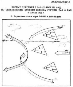 [7]. При обеспечении других родов авиации способом непосредственного прикрытия боевой порядок истребителей должен был состоять из группы непосредственного прикрытия (1/3 сил) и ударной группы (2/3 сил), следующих в стороне и выше прикрываемых групп.