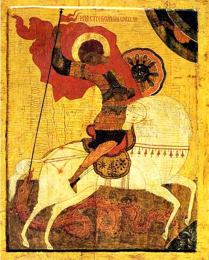 Идея Белобога перешла из древней русской веры в православие и запечатлена в росписях храмов. Икона Ф. Грека «Макарий Египетский»