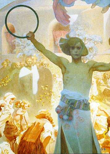 Чур. А дальше сын Даждьбога и отец всего русо-славянского рода — Семаргл-Огнебог (по этой причине люди назывались огнищанами и внуками Даждьбога). Он-то и отворял врата в Ирий. Или, как поется в «Бояновом гимне»: