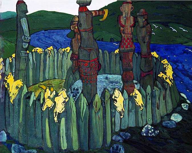 Самая высокая гора Кавказа Эльбрус была святыней для русов. Здесь находились храмы и возносились молитвы Роду. Картина К. Вогаевского «Жертвенники»