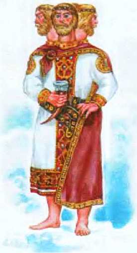 Идея триединого божества была известна и арийским индусам, где его называли Тримурти. Изваяние состояло из трех главных богов индуизма: Брахмы, Вишну и Шивы (по-нашему — Бармы, Вышнего и Сивы). Таким образом, в одном естестве соединились три важнейшие функции: творения (Брахма), хранения (Вишну) и разрушения (Шива). Славяно-русская идея была несколько иной: творение (Сварог), закон Прави (Перун) и божественный Свет (Святовит). Разрушение могло применяться лишь в исключительных случаях как кара за несоблюдение божественного закона жизни.