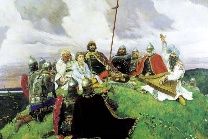 Тризна по умершему князю. На гуслях играет Боян. Это имя давали самым талантливым поэтам. Картина В. Васнецова