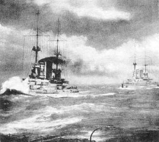 Броненосцы “Дойчланд" (вверху) и “Ганновер”