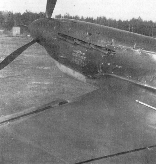 Самолет ЛаГГ-3 № 3121422, выпуск завода № 21, с подвешенными под крыльями 8 направляющими для неуправляемых ракетных снарядов РС-82, август-сентябрь 1941 года.