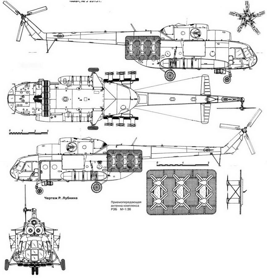 Конечно, этим совершенствование Ми-8 не ограничилось. Например, начиная с машины сер. № 17-01 изменили разметку пола грузовой кабины, что позволило более эффективно размещать в ней грузы с точки зрения центровки. С борта сер. № 22-01 вертолеты стали комплектовать подвесными топливными баками увеличенной емкости. В 1980-е годы на «восьмерке» прописался доплеровский измеритель скорости и угла сноса ДИСС-15, который, в отличие от своего предшественника типа ДИВ, работал на всех режимах полета.