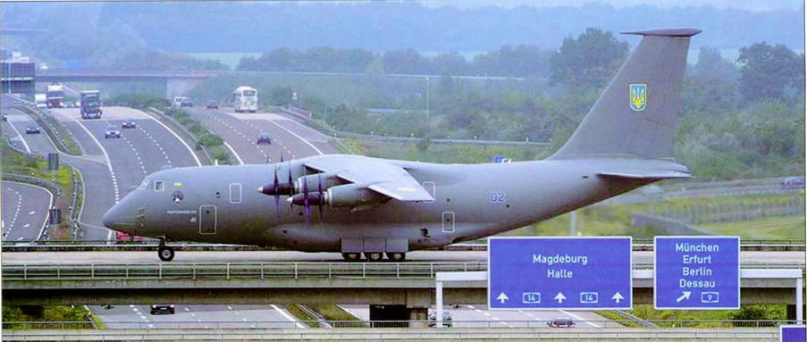 Самолет Ан-70 во время своего первого международного рейса выруливает на взлетную полосу аэропорта «Лейпциг- Галле», Германия.
