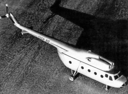 Поскольку вертолетных двигателей необходимой мощности в СССР не существовало, решили использовать модифицированный вариант самолетного двигателя АИ-24, разработанного в Запорожье под руководством А.Г. Ивченко. При этом его мощность пришлось уменьшить, дабы не переделывать главный редуктор и трансмиссию от Ми-4. По тем же соображениям первую машину решили делать с одним двигателем. Грузоподъемность вертолета первоначально закладывалась 1,5-2 т, но Миль сразу предусмотрел ее запас. Он прекрасно знал, что аппетит у заказчиков будет расти по мере развития проекта.