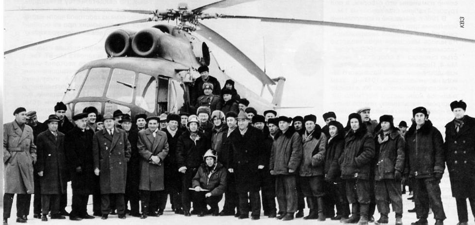 Сотрудники Казанского завода возле первого серийного Ми-8Т