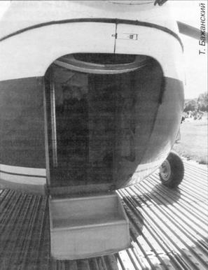 Проем грузолюка закрывается двумя распашными створками, которые не имеют привода и перемещаются вручную. Правая створка оборудована аварийным люком, а внутри левой створки располагаются в походном положении два трапа, которые используются при погрузке и выгрузке колесной техники и грузов. Размеры грузовой кабины: длина без створок/со створками — 5,34/7,82 м; ширина на полу/максимальная — 2,06/2,25 м; высота — 1,80 м.