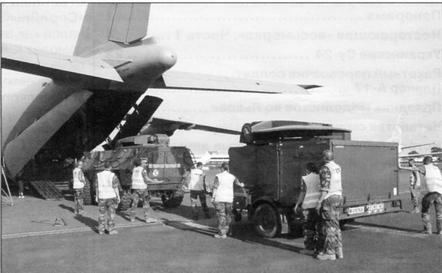 С 22 по 26 сентября Ан-70 выполнил первый в своей истории международный рейс, который прошел в рамках специальных летных испытаний по оценке его транспортных возможностей и расширению условий эксплуатации. Под управлением экипажа, возглавляемого летчиком-испытателем ГП «Антонов» Виктором Гончаровым, самолет за 9 ч 2 мин совершил перелет из аэропорта «Киев-Антонов» (Гостомель, Киевская обл.) в Банги (Центральноафриканская Республика). Как сообщает пресс- служба ГП «Антонов», в Банги Ан-70 принял на борт грузы военного назначения (на фото справа). С загрузкой 23,6 т самолет взял курс на Нджамену (Республика Чад), где была выполнена плановая промежуточная посадка. Как отметил командир экипажа, «из аэропорта Нджамены мы взлетали при температуре +33° С со взлетным весом, близким к максимальному. При этом самолет подтвердил расчетные характеристики по длине взлетной дистанции. Ан-70 также показал хорошую скорость набора высоты». Через 6 ч самолет прибыл к месту назначения груза, во французский г. Истр. Затем он перелетел в Лейпциг (Германия), а оттуда вернулся в Гостомель. В целом, при выполнении этого задания Ан-70 провел в воздухе более 20 ч, преодолев 13600 км. «На всем маршруте самолет демонстрировал свои высокие летные и взлетно-посадочные характеристики, а также низкий расход топлива. В реальных условиях испытана работа бортового погрузочно-разгрузочного оборудования. Все поставленные задачи были выполнены на высоком уровне», — подытожила результаты экспедиции пресс-служба ГП «Антонов».