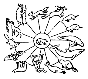 Линней, Карл (1707–1778). Шведский естествоиспытатель, установивший систему всего известного тогда живого мира. Не был эволюционистом, но его система неминуемо ставила вопросы о степени родства в живом мире и о происхождении этого родства. Самое щекотливое по тем временам место в «Системе природы» Линнея, мостик между животными и человеком, выглядело так: