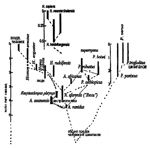 Палеонтологи обнаруживали в слоях земных свидетельства странных, с точки зрения старого дарвинизма, вещей. О некоторых странностях мы говорили. Похоже, самые разные группы зверозубых ящеров одновременно и независимо друг от друга приобретали признаки млекопитающих животных — шерсть, теплокровность, млекопитание. А до них на уровень рептильности выходили также одновременно и независимо самые разные древние амфибии. А еще раньше приобретали схожие амфибийные признаки древние кистеперые из разных родов. Самые разные голосемянные растения 120 миллионов лет назад приобретать покрытое семя и цветок. На путь очеловечивания встали в конце третичного времени самые разные существа, потомки афропитека, — человекообразной обезьяны, жившей около 10 миллионов лет назад. В предыдущей главе шел разговор и о чрезвычайно запутанном вопросе с неандертальцами. Были ли они нашими предками? А может быть, многие черты сходства между ними и нами — от долгой жизни по соседству, от общих болезней — и тоже горизонтального обмена генами?