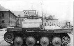 Разведывательный танк модели Sd.Kfz. 140/1. Упоминаемый ранее Pz.Kpfw.II Ausf.L «Лухс», несмотря на все его достоинства, оказался конструктивно сложным и дорогим в производстве, поэтому уже в июле 1943 года фирма ВММ получила задание разработать новый разведывательный танк, используя агрегаты Pz.Kpfw.38(t). В качестве вооружения рассматривались два варианта — 20-мм автоматическая пушка KwK 38 с пулеметом MG 42 во вращающейся башне и 75-мм орудие К51 (L/24) в неподвижной рубке. Работы шли высокими темпами — в сентябре представителям инспекции танковых войск вермахта и Управления вооружений продемонстрировали деревянные макеты обоих вариантов, а в январе 1944 года шесть старых шасси Pz.Kpfw.38(t) переделали в разведывательные танки — четыре с 20-мм и два с 75-мм пушками (соответственно артсистемы KwK 38 и KwK 51).