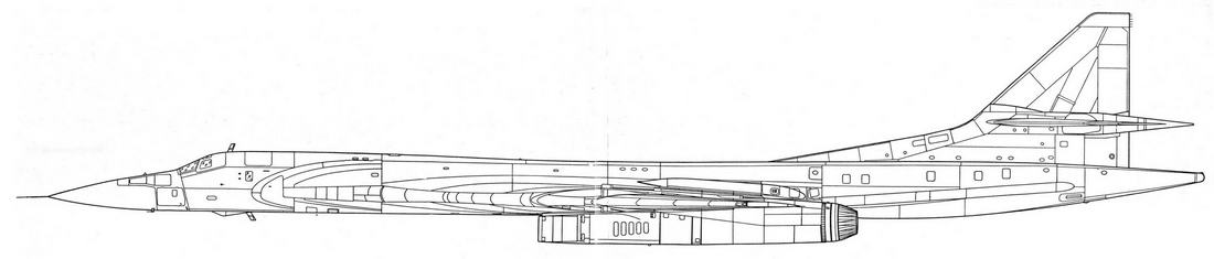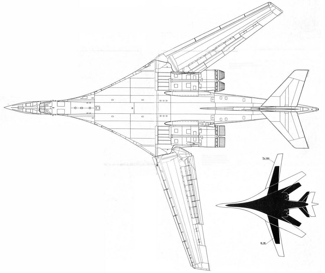 Несмотря на отказ от прямого развития схемы Ту-144, некоторые использованные на нем конструктивно-технологические достижения нашли применение и на Ту-160. К их числу относятся элементы интегральной аэродинамической компоновки, объединившей фюзеляж и наплывную часть крыла в единый агрегат. Такая компоновка решила триединую задачу -обеспечила высокое весовое совершенство, улучшила несущие свойства и позволила, благодаря большим внутренним объемам, разместить значительную массу груза и топлива. В итоге при близких к Ту-95 габаритах Ту-160 на 50% тяжелее.