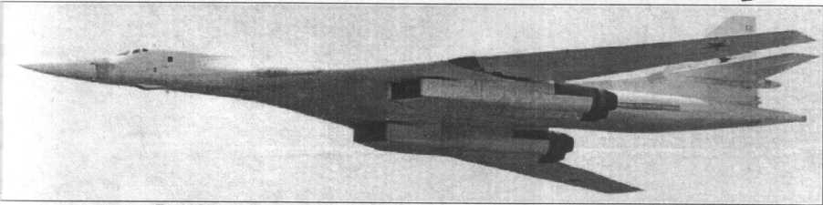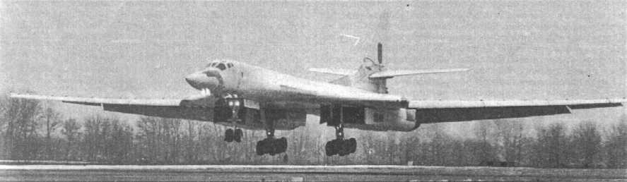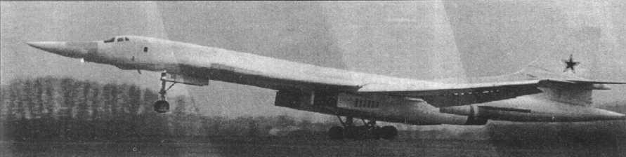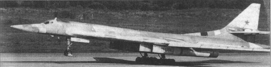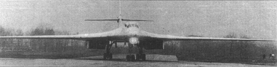 Минуло несколько лет. 25 ноября 1981 г. самолет готовился к испытаниям на аэродроме ЛИИ в подмосковном г. Жуковском (Раменское). Машина стояла на газовоч-ной площадке рядом с двумя Ту-144. В таком окружении она и была запечатлена на первом опубликованном на Западе фото. Пресса спекулировала на том, что самолет преднамеренно, в пропагандистских целях был выставлен под объективы американских разведывательных спутников (предполагалось, что снимок получен из космоса). Действительность же оказалась куда более прозаичной: снимок сделал один из пассажиров самолета, садившегося на расположенный рядом аэродром Быково. С момента публикации бомбардировщик получил кодовое название Ram-P (Ram - от названия Раменское) и код НАТО - Blakjack. Под этими именами миру был представлен самый тяжелый бомбардировщик всех времен.
