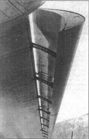 Внутренняя часть закрылка при увеличении стреловидности крыла складывается, образуя аэродинамический гребень