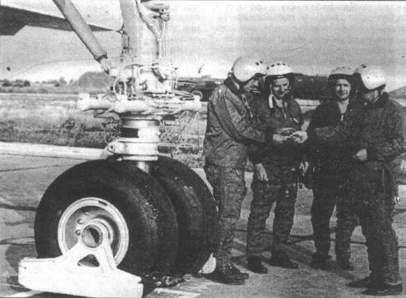 Более серьезных мер потребовало обнаружение весной 1988 г. неподалеку от Прилук замаскированного под пень контейнера с аппаратурой, прослушивавшей радиопереговоры и фиксировавшей работу радиотехнических систем самолетов. Его владельцы пожелали остаться неизвестными, а Ту-160 получили своего рода «намордники» - чехлы из металлизированной ткани, закрывавшие на земле носовой обтекатель РЛС и не пропускавшие наружу излучение (они же защищали технический экипаж от высокочастотного облучения во время опробования самолетного оборудования).