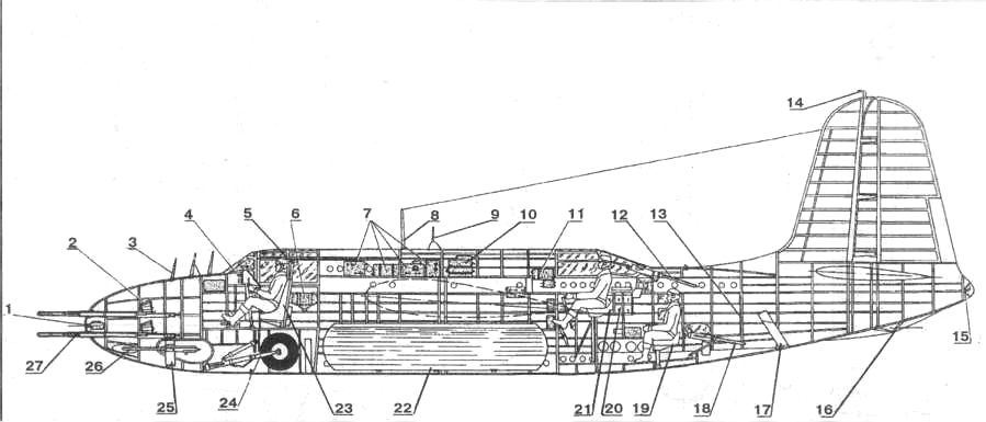 При соответствующем переоборудовании самолет может нести свободнопадающие ядерные бомбы и любые виды обычных бомб или морских мин.