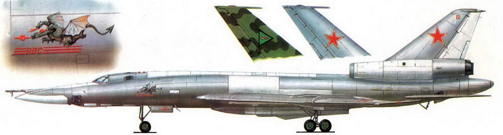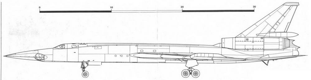 Новый проект, руководителем которого назначили С.М.Егера, получил обозначение «изделие 105». 10 августа 1954 г. вышло постановление СМ СССР и ЦК КПСС, узаконившее разработку дальнего сверхзвукового бомбардировщика, а первый общий вид машины появился в ноябре того же года. В отличие от «изделия 103» самолет оснащался крылом стреловидностью 52° и двумя двигателями ВД-5Ф, размещенными в фюзеляже по типу фронтового сверхзвукового бомбардировщика «изделие 98»[* На его базе впоследствии был создан тяжелый перехватчик Ту-128]. В конце того же года ЦАГИ провел продувки аэродинамических моделей и выдал рекомендации по изменению конфигурации самолета. Конструкторы перенесли двигатели, разместив их в гондолах у корня вертикального оперения. Оптимизация облика машины продолжалась почти год. В конце 1955 г. появилась окончательная компоновка, развернулись рабочее проектирование и изготовление первых - агрегатов прототипа «сто пятого».