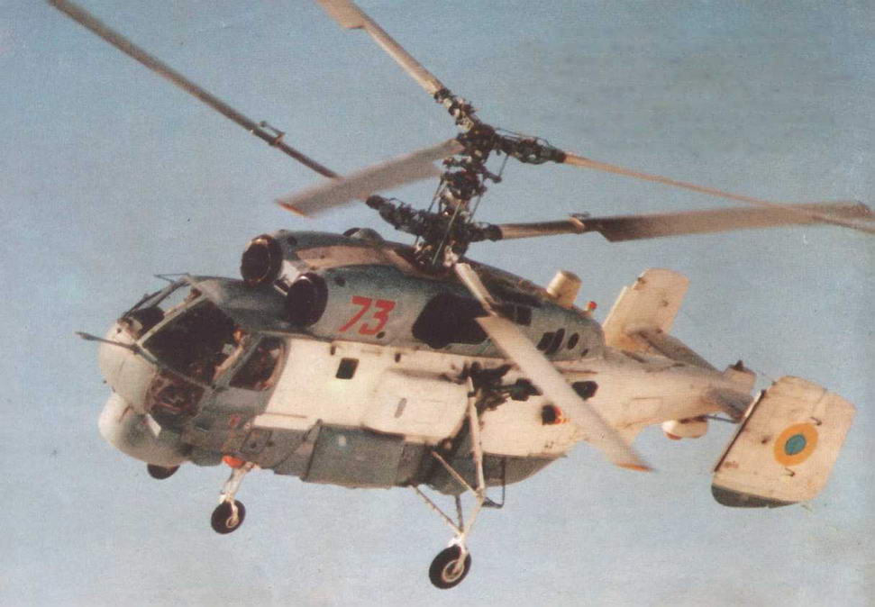Маневренные возможности Ка-27 демонстрирует заместитель начальника государственного научно-испытательного центра кандидат технических наук заслуженный летчик-испытатель СССР полковник Ю.Тишков.