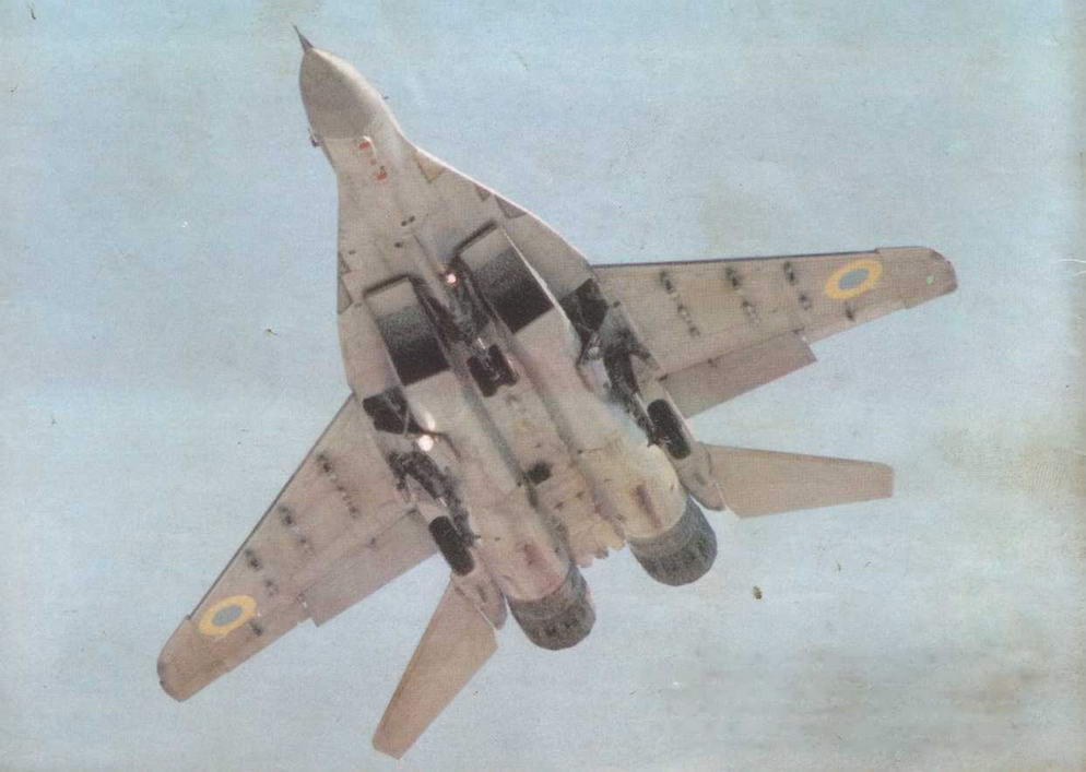 Высший пилотаж на МиГ-29 демонстрирует военный летчик 1 класса старший инспектор-летчик службы безопасности полетов авиакорпуса полковник А.Головань, освоивший за годы службы 8 типов самолетов