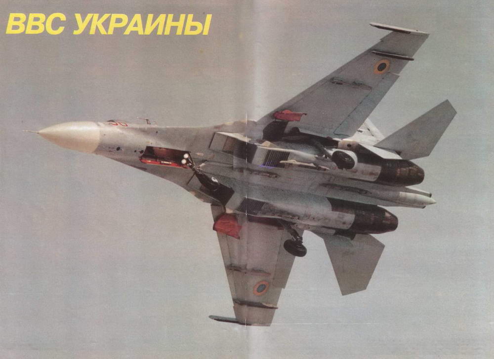Су-27 пилотирует летчик-снайпер старший инспектор-летчик боевой подготовки авиакорпуса полковник Н.Коваль. За годы службы в ВВС он освоил 16 типов самолетов и вертолет. Авиашоу на аэродроме Гаврышевка 23 марта 1996 г.