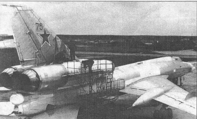 Ту-22РДМ Контейнер с короткофокусной фотоаппаратурой демонтирован, под грузовым отсеком установлен контейнер с аппаратурой РЭБ