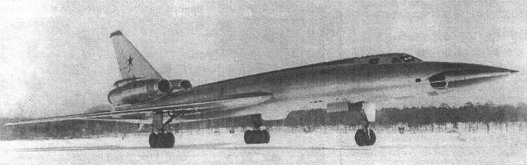 Первые проекты советских сверхзвуковых дальних бомбардировщиков появились в начале 50-х гг. Их разработчиками стали конкурирующие ОКБ А.Н.Туполева и В.М.Мясищева. Последнее, менее «обремененное» опытом и традициями, делало ставку на максимальную техническую оригинальность. Основным же подходом конструкторской школы Туполева был прагматизм. Возможно, самолеты этой фирмы не выглядели столь авангардно, как Мясищева, однако козырем Туполева была реальность заявленных характеристик и более быстрая доводка прототипов. Известна фраза Андрея Николаевича: «Если самолет сконструирован на 70% от нуля, он безусловно окажется неудачным». Неудивительно, что, приступая к созданию сверхзвукового бомбардировщика, конструкторы максимально использовали наработки по уже запущенному в серию Ту-16. Проект его сверхзвукового варианта, получивший обозначение «изделие 103», напоминал исходную машину, оснащенную четырьмя ТРД ВД-5 либо ВД-7 (разработки ОКБ В.А.Добрынина). Двигатели размещались один над другим по бортам фюзеляжа. «Дешевое» решение, увы, дало «дешевый» результат - расчеты показали бесперспективность проекта. Требовалось принять более радикальные меры.