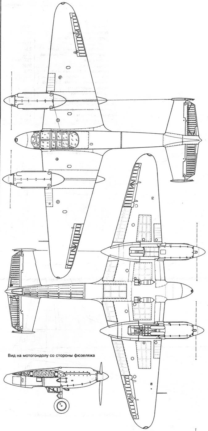 Осенью 1938 г. приоритеты прорабатываемым вариантам задавались в следующем порядке: истребитель с пушечным вооружением, ближний разведчик и скоростной бомбардировщик. Наступательное вооружение истребителя решено было усилить: теперь оно состояло из двух подфюзеляжных пушек и трех пулеметов ШКАС (один в носовом обтекателе и по одному в развале цилиндров каждого мотора с ведением огня через полые валы редукторов). Экипаж истребителя уменьшили до одного пилота.