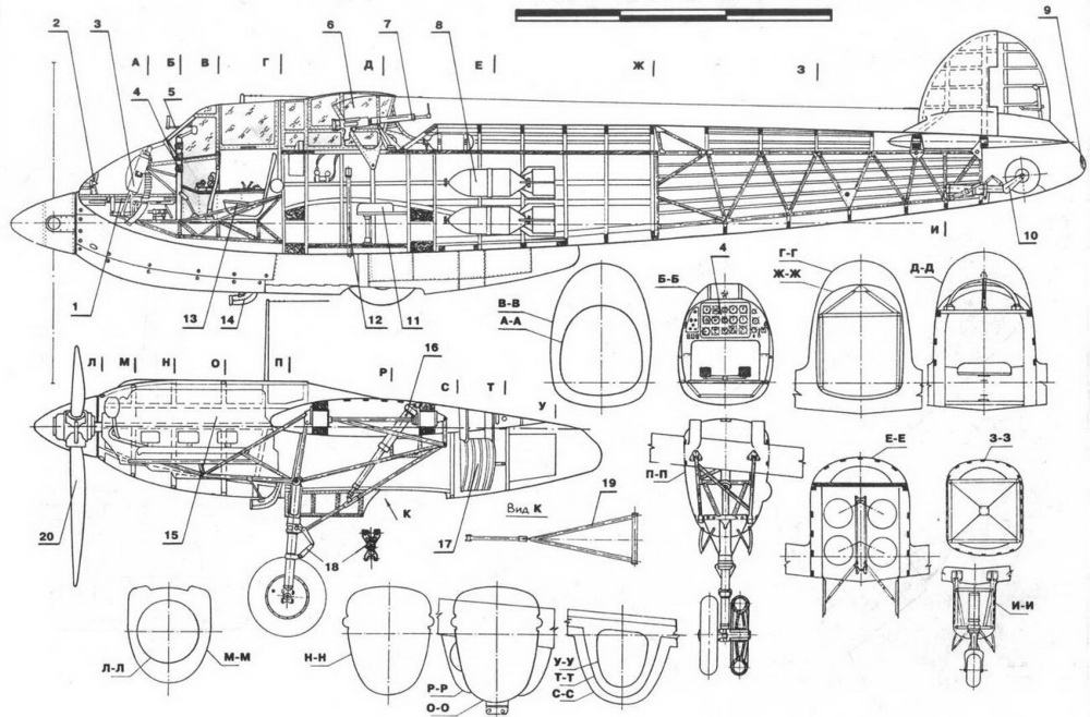 Вооружение разведчика должно было включать 8 авиабомб калибра 20 кг в фюзеляжном бомбоотсеке, один подвижный и один неподвижный (в носке фюзеляжа) пулемет ШКАС. Аэрофотоаппарат АФА-19 решили разместить позади фюзеляжного бензобака, под радиостанцией "Двина". В задней кабине предусматривалась специальная "лежанка" с иллюминатором в полу для ведения визуального наблюдения.