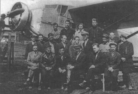 Первый директор и главный конструктор Харьковского авиазавода К.А.Калинин (сидит четвертый слева) среди сотрудников, отличившихся при постройке самолета К-5