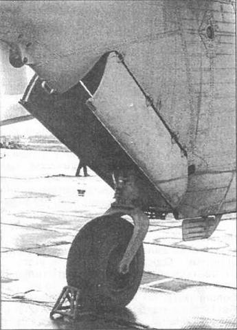 Шасси - трехопорное, с хвостовым колесом. Амортизация - масляно-воздушная. Система торможения снабжена антиюзовой автоматикой. Позволяет эксплуатировать самолет с бетонных и грунтовых ВПП при прочности грунта не менее 7 кгс/см². Главные опоры шасси - одностоечные, расположены по бортам фюзеляжа перед первым реданом, убираются в ниши и закрываются двумя щитками. Каждая опора состоит из амортизационной стойки с установленным на полуоси тормозным колесом КТ83А (1450x520 мм), фермы, V-образного подкоса и замков выпущенного и убранного положений. Выпуск и уборка опоры осуществляются гидравлическим цилиндром-подъемником, шарнирно прикрепленным к подкосу и рычажному механизму, связанному с фермой. Нижний щиток жестко закреплен на амортизационной стойке, а верхний - поворачивается при уборке или выпуске опоры с помощью рычажного механизма. Основной материал главных опор шасси - сталь ЗОХГСА, шарнирных соединений - нержавеющая сталь 14Х17Н2, бронза БрАЖМцЮ-З- 1,5 и БрАЖН 10-4-4. Хвостовая опора - рычажного типа, убирается в специальную нишу и закрывается двумя створками. Состоит из амортизатора, траверсы, V-образного подкоса, управляющей и следящей систем управления поворотом хвостового колеса, нетормозного колеса К329 (950x350 мм) и замка убранного положения опоры. В выпущенном положении хвостовая опора фиксируется сегментным замком, расположенным внутри гидроцилиндра- подъемника. Внутренняя полость подшипников колеса загерметизирована от попадания воды. Выпуск и уборка хвостовой опоры осуществляются гидравлическим цилиндром-подъемником. При взлете и посадке самолета хвостовое колесо фиксируется от разворота стопором с пневмоприводом. Основной материал хвостовой опоры - маломагнитные титановые сплавы, диска колеса - антимагнитный алюминиевый сплав АМгб.