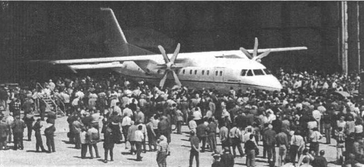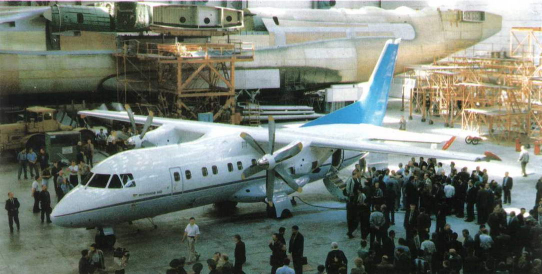 6 июня в АНТК им. О.К.Антонова состоялась выкатка и передача на летные испытания первого экземпляра самолета местных воздушных линий Ан-140. В состоявшейся пресс-конференции приняли участие: Генеральный конструктор АНТК П.В.Балабуев, Генеральный конструктор Запорожского МКБ «Прогресс» Ф.М.Муравченко, Генеральный конструктор Санкт-Петербургского НПО им. В.Я.Климова А.А.Саркисов и Генеральный директор Запорожского АО «Мотор-Сiч» В.А.Богуслаев. Отвечая на вопросы журналистов, П.В.Балабуев сформулировал четыре основных принципа, положенных в основу проекта Ан-140: невысокая стоимость серийного самолета, повышенная экономичность в эксплуатации, комфортабельность, возможность базирования на небетонированныхаэродромах, в том числе галечных, которых еще много в северных и восточных регионах России. Потребность в таком самолете ощущалась давно, но его создание тормозилось отсутствием подходящего двигателя. Выходом из положения стала разработка совместными усилиями НПО им. В.Я.Климова и АО «Мотор-С1ч» ТВЗ-117ВМА-СБ2 - самолетного варианта известного вертолетного двигателя ТВЗ-117. В силовую установку заложен потенциал дальнейшего развития, что дает хорошие возможности для появления различных модификаций Ан-140.