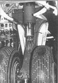 Носовая, правая подкрыльевая и основная опоры шасси Як-25