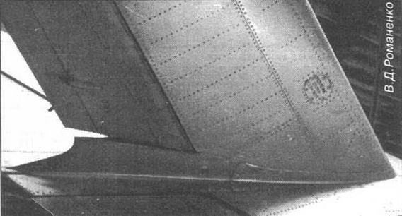 Оперение - стреловидное, двухлонжеронной конструкции с установленным на половине размаха киля переставным стабилизатором с диапазоном отклонения 4°. Стреловидность киля по линии четвертей хорд - 54°, стабилизатора - 55°. Изменение угла установки стабилизатора обеспечено вертикальным перемещением траверсы механизма перестановки, являющейся передним узлом крепления стабилизатора к килю. Механизм перестановки приводится в движение гидромотором ГМ-36 через редуктор. Управление гидромотором - электрическое, от переключателя на ручке управления самолетом. Законцовка киля выполнена из радиопрозрачного стеклотекстолита, на ней ’установлена антенна связной радиостанции Р-835. Рули высоты и направления имели аэродинамическую) и весовую компенсацию. На нижней половине руля направления установлен триммер, а на верхней - отгибной нож.
