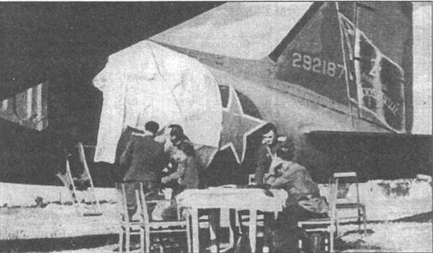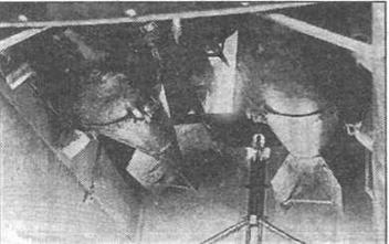 Фотоборудование самолета состоит из четырех фотоаппаратов и позволяет вести фотографирование отдельных объектов и маршрутов как на дозвуковых, так и на сверхзвуковых скоростях полета днем при хорошей видимости. Фотоаппарат АФА-42/50 или АФА-42/75 на подвижной установке предназначен для перспективного фотографирования с высот от 2000 до 10000 м под углами от 45° до 80° от вертикали по обоим бортам фюзеляжа. Фотоаппарат АФА-41/10, установленный неподвижно в фюзеляже, предназначен для мелкомасштабной маршрутной съемки. На высотах 300- 400 м его можно использовать для разведки незамаскированных объектов, а на высотах от 1000 до 16000 м - для привязки к карте снимков, произведенных плановыми фотоаппаратами. Плановые фотоаппараты АФА-42/75 или АФА-42/100, установленные на автоматических качающихся установках АКАФУ-ЗЗМ, позволяют производить одно-, двух- и четырехмаршрутное фотографирование с высот от 1000 до 16000 м при перегрузке до Зд. Для ведения прицельного фотографирования в полете, а также для выполнения визуальной разведки местности и определения путевой скорости с высот более 1000 м в кабине штурмана установлен прицел-визир ПВ-2Р7.