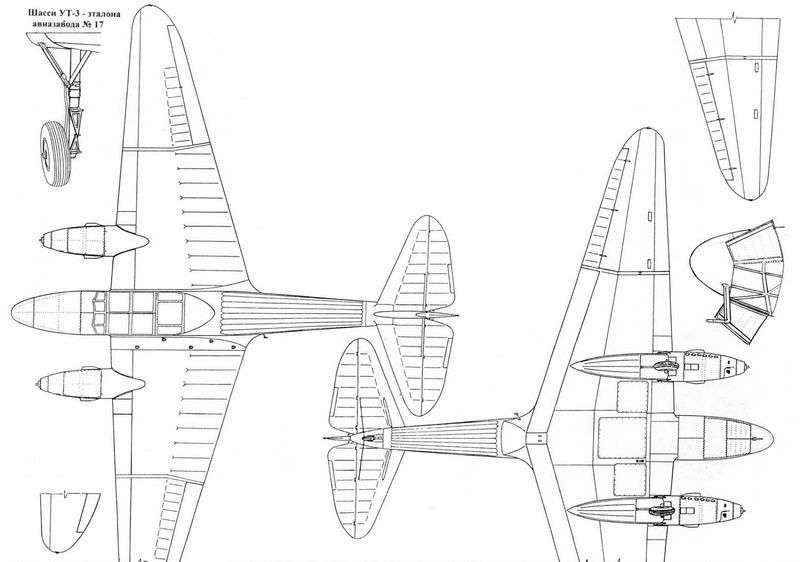 Шасси - велосипедного типа, состоит из главной, передней и двух подкрыльевых опор. Все опоры убираются назад по полету: передняя и главная - в фюзеляж, подкрыльевые - в обтекатели на законцовках крыла. Передняя опора несет колесо размера 600x155 мм, разворот которого осуществляется от педалей ножного управления самолетом через бустер, являющийся одновременно и демпфером колебаний типа «шимми». Управление колесом сблокировано со щитками-закрылками: при их отклонении угол поворота колеса не превышает 12°, при убранных щитках-закрылках угол достигает 45°. Главная опора шасси имеет два тормозных колеса КТ-69/4 размером 880x230 мм. Для ликвидации юза система торможения колес снабжены автоматической системой растормаживания.