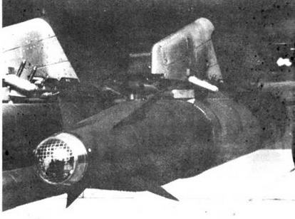 В морской авиации для поражения подводных лодок самолеты и вертолеты вооружаются глубинными бомбами и самонаводящимися торпедами с реактивным двигателем. Окраска их—серо-голубого цвета.