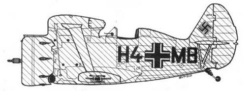 Окраска: стандартный •рубленый• камуфляж Luftwaffe из двух цветов - темно-зеленого (Dunkelgrun 71) и черно-зеленого (Schwarzgrun 70). Нижние поверхности светло-голубого цвета (НеЧЫаи 65). Немецкие опознавательные знаки закрашены серо-оливковой краской (Olive Drab 41). Номер 102 - белый.