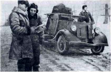 У оборудованного радиостанцией бронеавтомобиля БА-20.