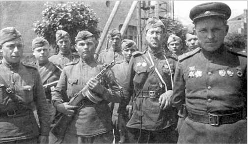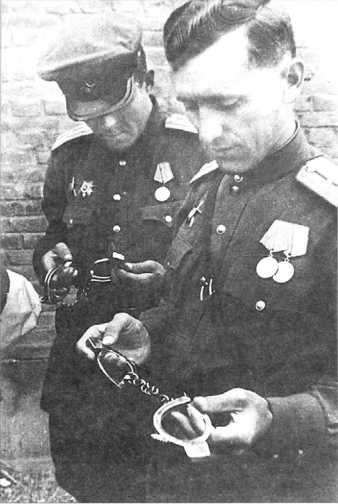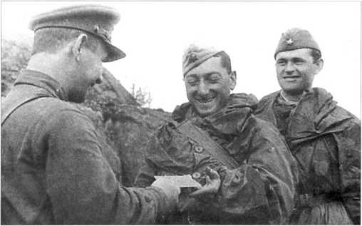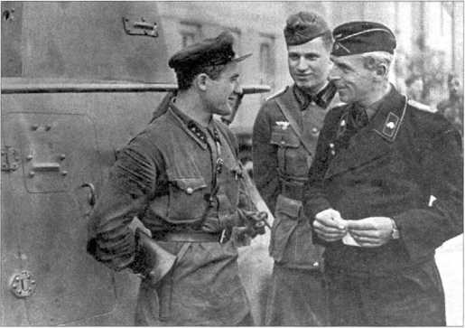 Братья по оружию — советский помкомвзвода, германский лейтенант-танкист и солдат вермахта. Перед парадом в Бресте, сентябрь 1939 г.