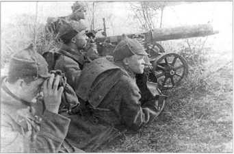 Пулеметчики на учениях. Хорошо видны брезентовые пехотные ранцы с кожаными шлевками на крышке и боковинах. Предвоенное фото.