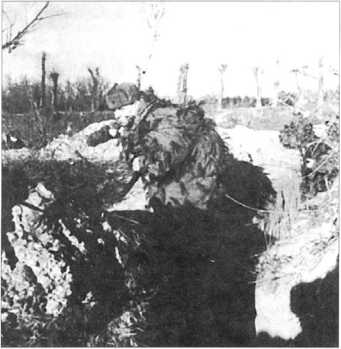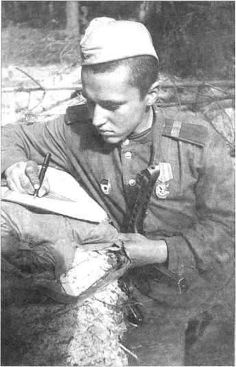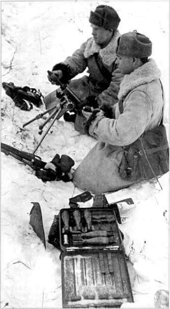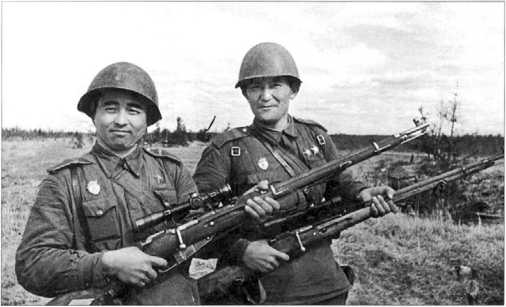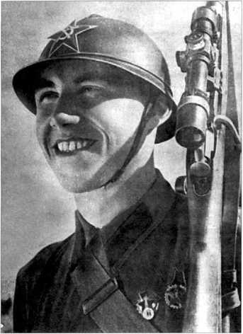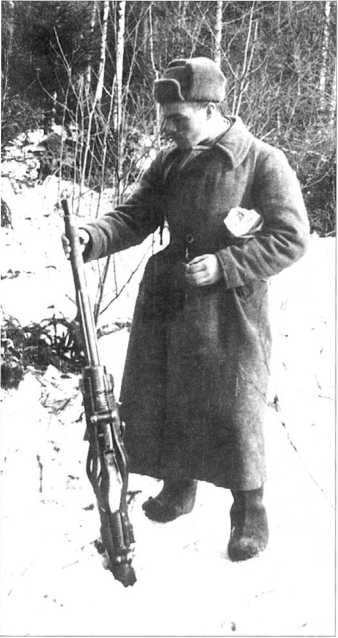 5. Снайпер — младший лейтенант в стеганой ватной одежде, с самозарядной винтовкой Токарева.