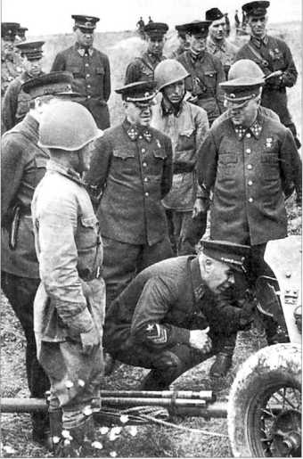 Герой Халхин-Гола комкор Г.К. Жуков первым удостоился звания генерала армии. Свыше тысячи высших военачальников получили генеральские звания в 1940 г. Ромбы заменились звездочками, но не всегда в том же количестве. К началу Отечественной войны генералами не стали очень многие высшие командиры — в основном те, кто пережили репрессии. Более удачливые из них надели впоследствии генеральские звезды. Другие не дожили до этого, как, например, Д.Г. Петровский, погибший в 1941 г при прорыве из окружения, Произведенный приказом по радио в генерал-лейтенанты он носил генеральскую кокарду и петлицы комкора.